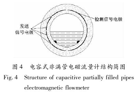 ②電容式非滿管生活污水流量計(jì)h。電容式非滿管生活污水流量計(jì)結(jié)構(gòu)簡圖如圖4所示。、檢測信號電極  發(fā)送信號電