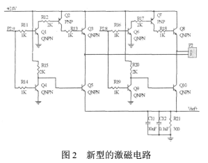 為此,設(shè)計(jì)了一個(gè)新型的激磁電路,并將激勵(lì)電流反饋到A/D轉(zhuǎn)換器,以消除激勵(lì)電流不穩(wěn)定對(duì)A/D轉(zhuǎn)換結(jié)果的影響,如圖2。