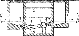 由于大口徑管道在多數(shù)場(chǎng)合下是埋在地下的,因此大口徑傳感器在安裝前應(yīng)做好水泥地坑。圖6-19所示是在給排水系統(tǒng)中常見的安裝形式。水泥地坑應(yīng)有足夠的活動(dòng)空間,側(cè)壁埋有敷設(shè)電纜的鋼管,上有蓋板防止雨淋,下有泄水管以免坑內(nèi)積水而使傳感器侵水。為了拆裝方便,傳感器應(yīng)放在墊腳上,且在下游側(cè)裝有活絡(luò)的伸縮管。圖6-20是105%發(fā)煙硫酸流量計(jì)在地下水泥管污水排放系統(tǒng)中的安裝實(shí)例。