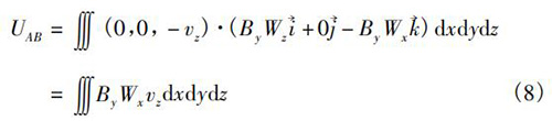 式中V為水泥漿流量計(jì)傳感器測(cè)量空間;W→為權(quán)函數(shù)。在直角坐標(biāo)系(x,y,z)中,式(5)可以轉(zhuǎn)換為
