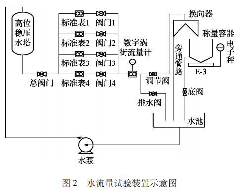 在試驗(yàn)裝置管路出口處裝有換向器,用來改變流體的流向,使水流入稱量容器或者旁通管路而不改變流量。換向器啟動時(shí),觸發(fā)計(jì)時(shí)控制器,以保證水的重量和時(shí)間的同步測量。