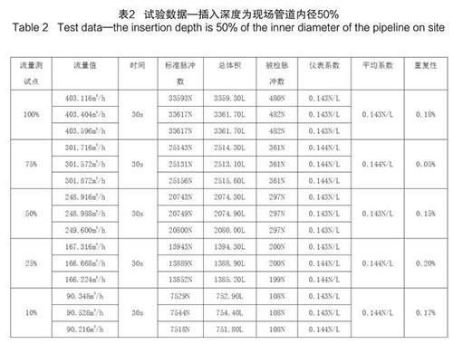 插入式壓縮空氣流量計(jì)插入深度為現(xiàn)場(chǎng)管道內(nèi)徑的 12.5%時(shí),試驗(yàn)數(shù)據(jù)如下(以 DN200 為例):