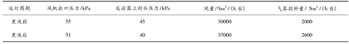 智能型渦街流量計(jì)煮洗吹掃后,裝置運(yùn)行期間無燃爆事故,且裝置運(yùn)行的風(fēng)量明顯提高,系統(tǒng)阻力明顯降低,投料量增加?,F(xiàn)將煮洗前后的運(yùn)行數(shù)據(jù)對(duì)比如下: