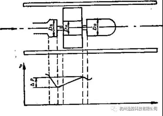 由于流體通過渦輪時(shí)會(huì)對(duì)渦輪產(chǎn)生一個(gè)軸向推力,使鈾承的摩擦轉(zhuǎn)矩增大,加速鈾承磨損,為了消除軸向力,需在結(jié)構(gòu)上采取水力平衡措施,這方法的原理見下圖所示。由于渦輪處直徑DH略小于前后支架處直徑Ds,所以,在渦輪段流通截而擴(kuò)大,流速降低,使流體靜壓上升P,這個(gè)P的靜壓將起到抵消部分軸向推力的作用。
